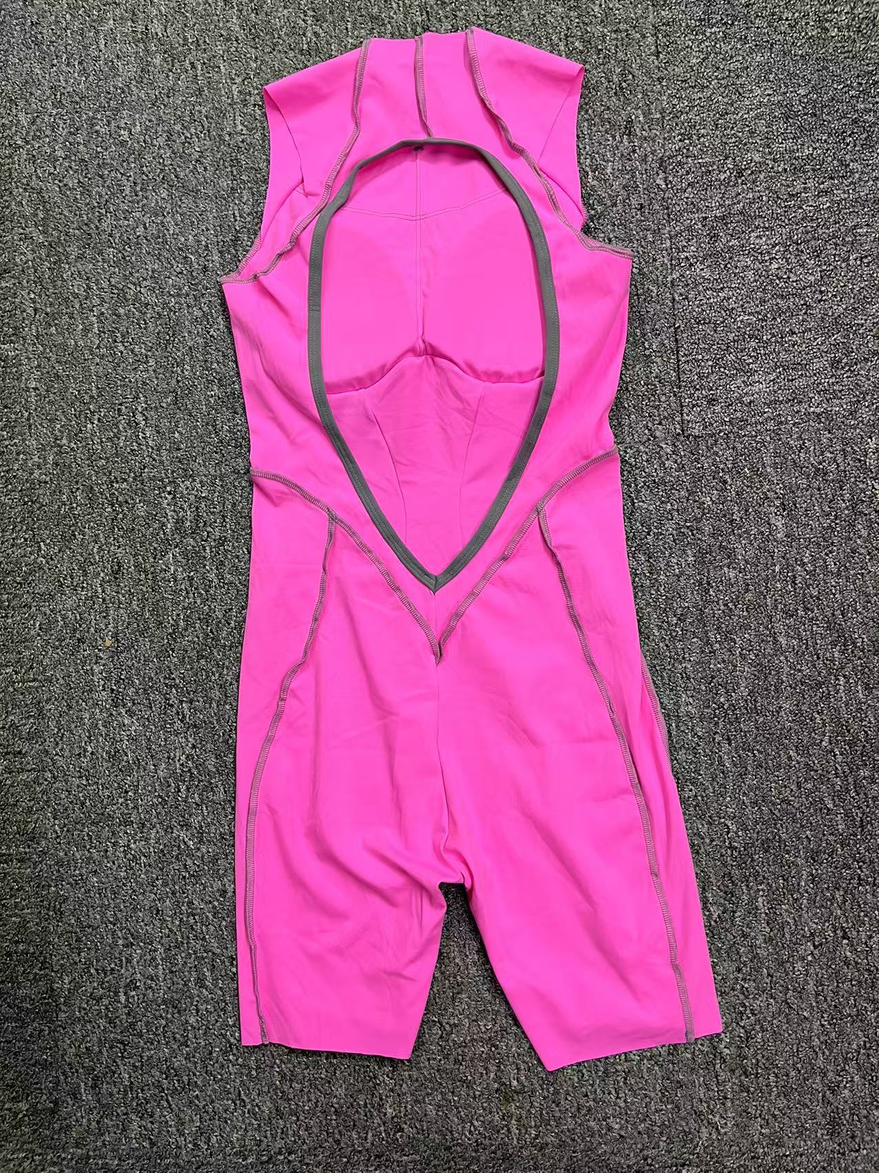 Contrast Color Tight And Fitness Backless Jumpsuit QS11501