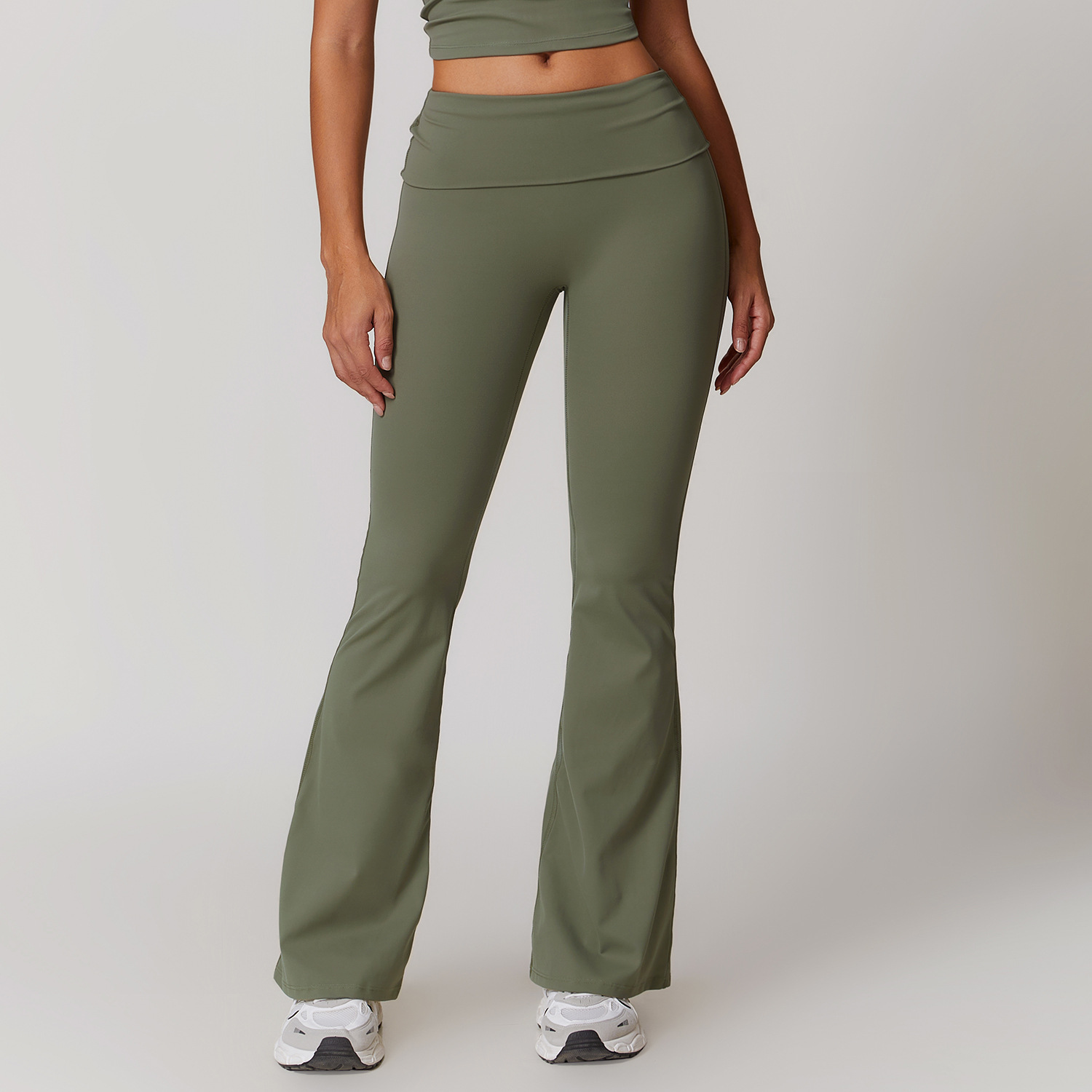 • Soft Fabric Folded Waist Flare Yoga Leggings 8791