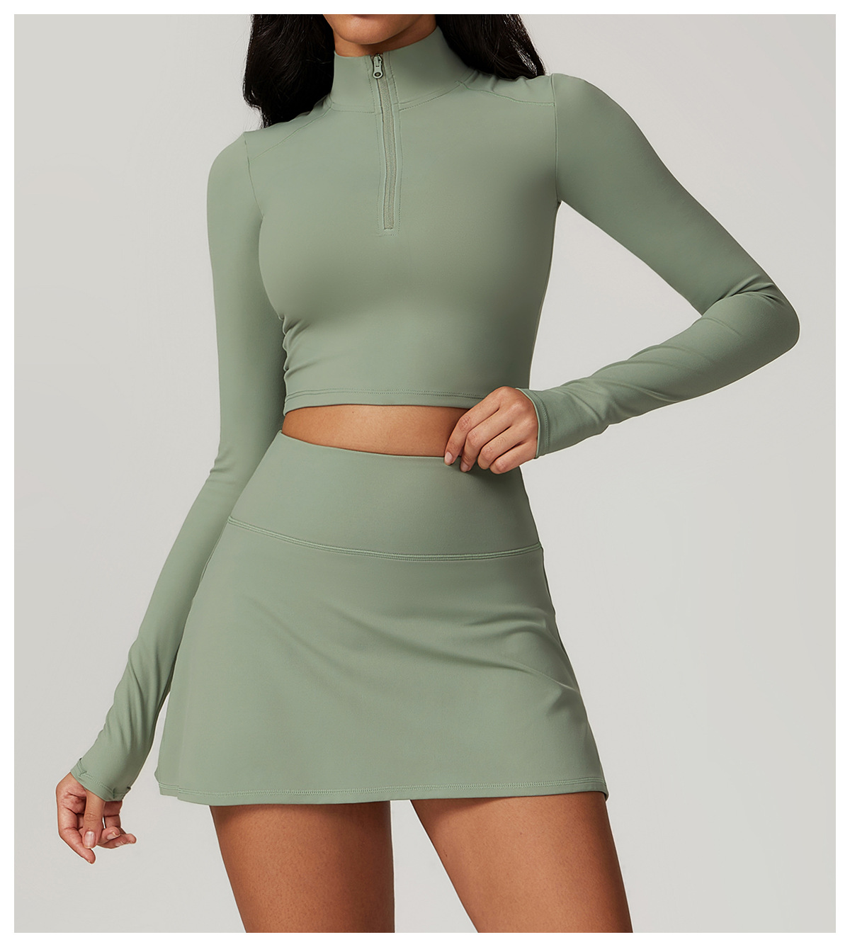 • Soft Fabric Half Zip Yoga Top With Thumb Hole 8796