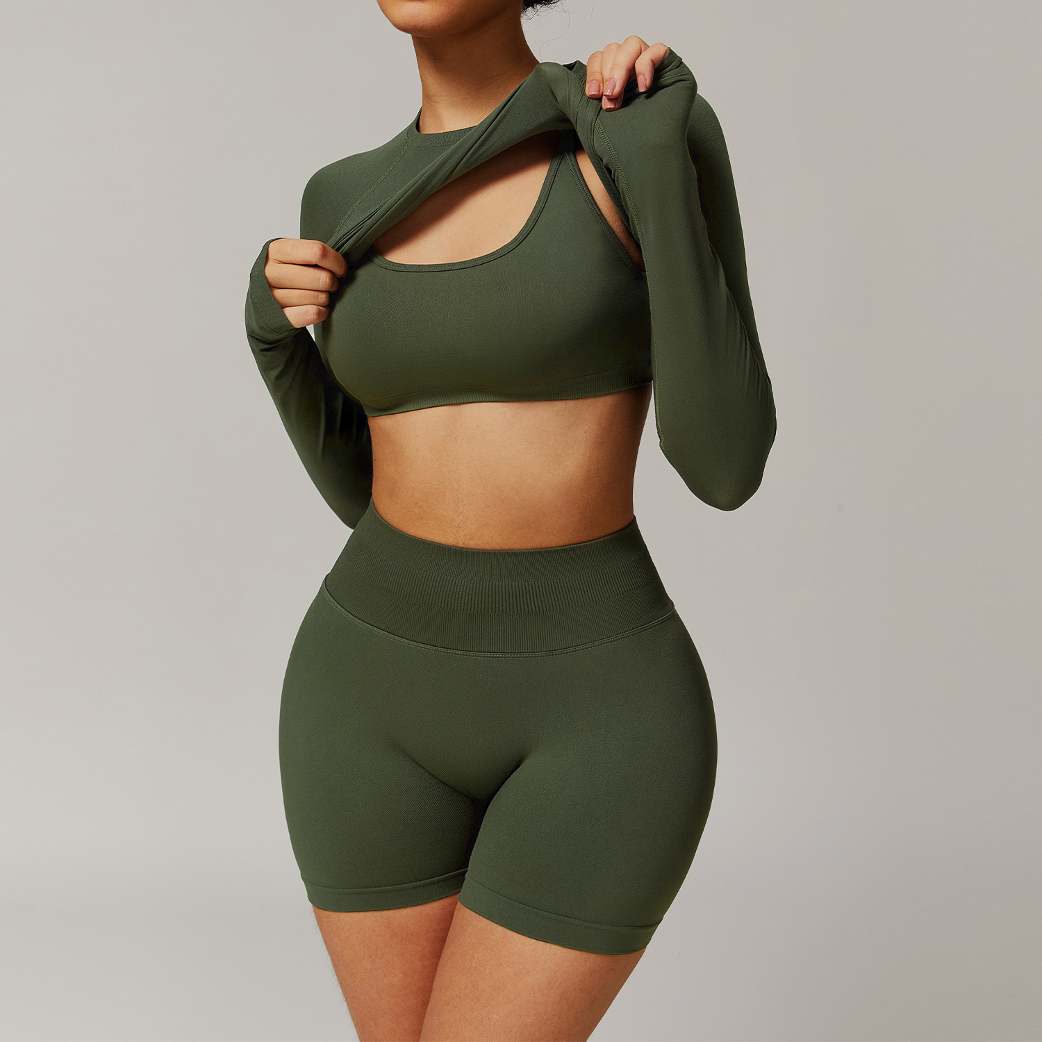 Seamless Scrunch Three Pieces Yoga Sets 4 Options 7731