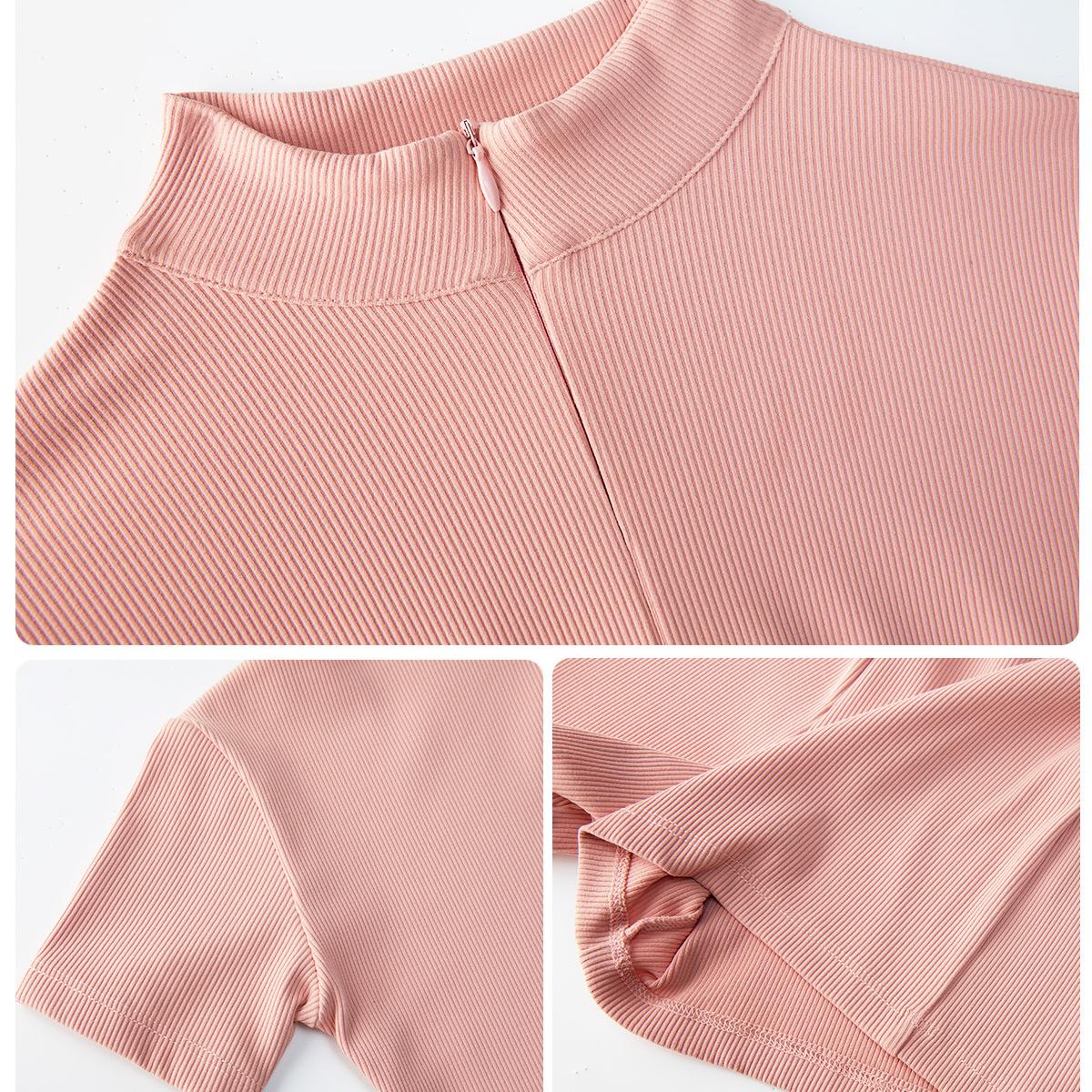 Threaded Short Sleeves And Zippered Bodysuit SYFTM0231