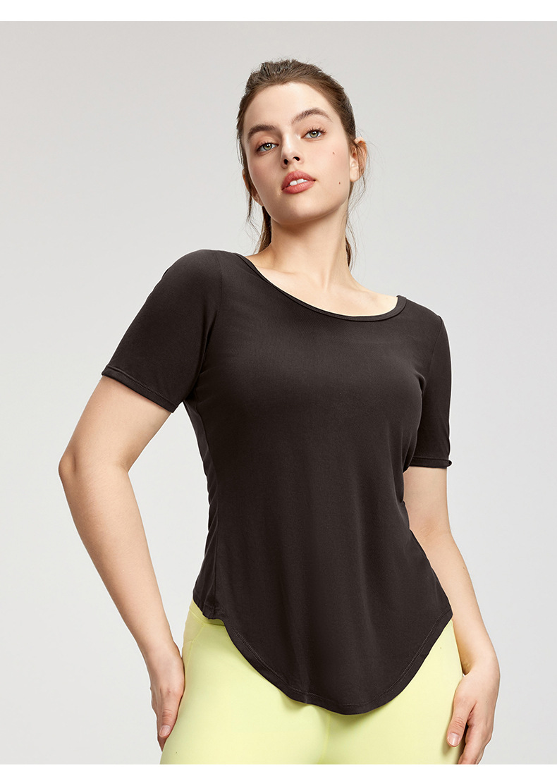 • Back Twist-Knot Backless Plus-Size Yoga Short-Sleeve Top DWA215439
