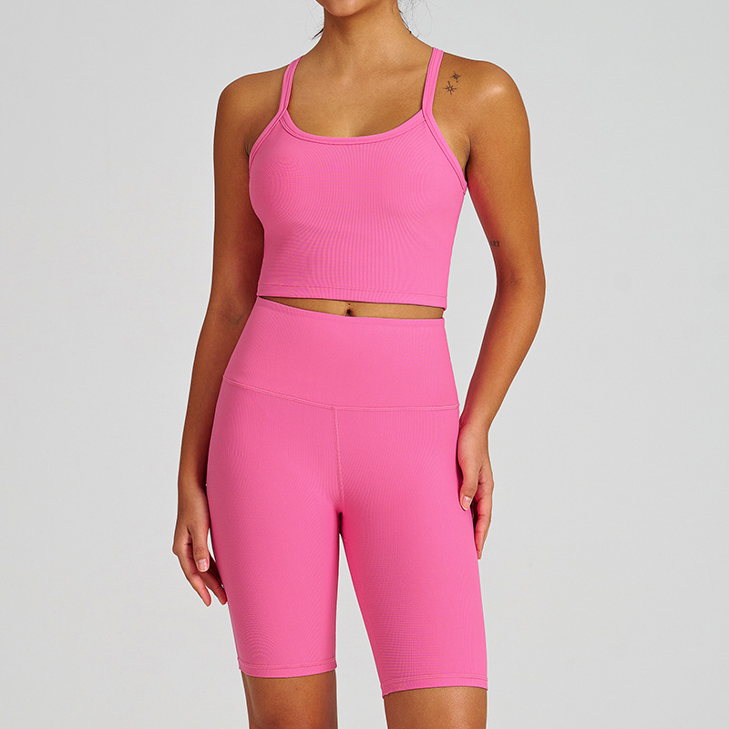 • High-Waisted Spaghetti Strap Open-Back High-Impact Sports Bra Set for Running SKL-QY-B6004+K5012