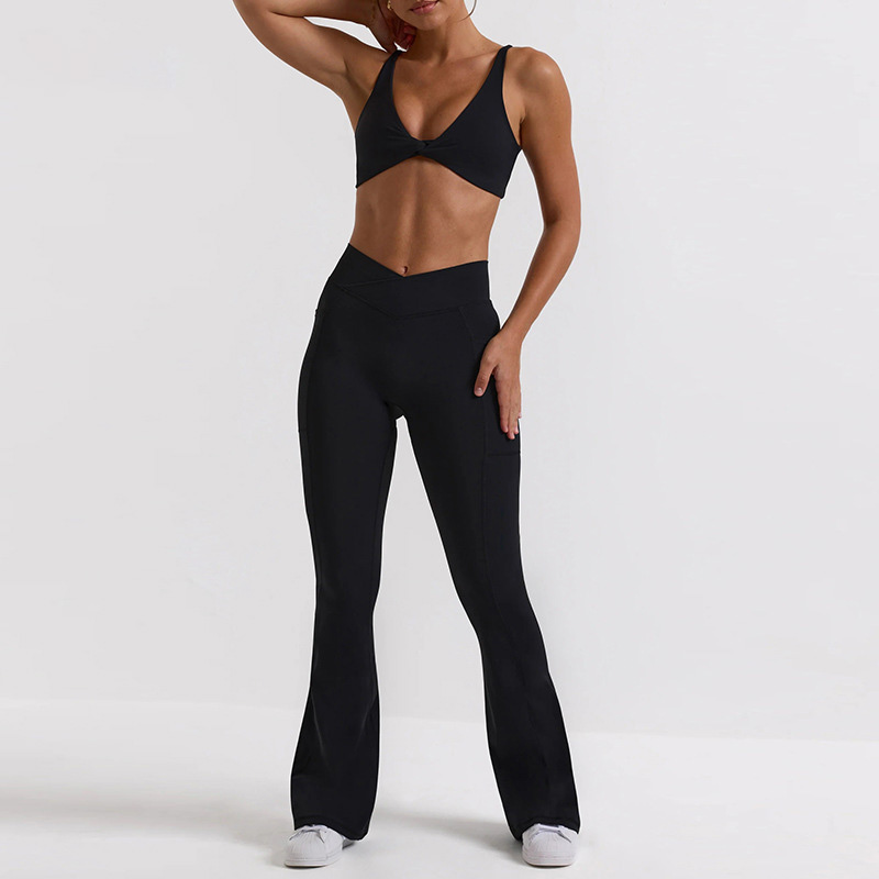 • Strappy Sports Bra & High-Waisted Butt-Lifting Workout Leggings Naked-Sensation Solid Color Yoga Set SKL-QY-B3075+K3609